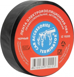 Изолента TERMINATOR профессиональная для автосервисов и самого различного применения, как в бытовых, так и профессиональных условиях. Обладает высокой эластичностью и мягкостью в широком диапазоне температур. Толщина 0,13 мм, ширина 19 мм, длина 20 м. Цвет черный, поверхность матовая.