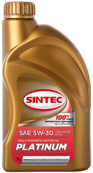 Синтетическое моторное масло «SINTEC PLATINUM SAE 5W-30, ACEA A5/B5 API SL» производится из специально подобранных базовых масел произведённых по синтетической технологии и высокоэффективного пакета присадок. Предназначено для максимальной защиты бензиновых и дизельных двигателей современных автомобилей, работающих в различных условиях эксплуатации. Обладает превосходными низкотемпературными свойствами.